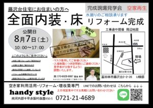 富田林空き家のリノベーション工事が完成しました。ご近所の方に見学会のを開催しております。